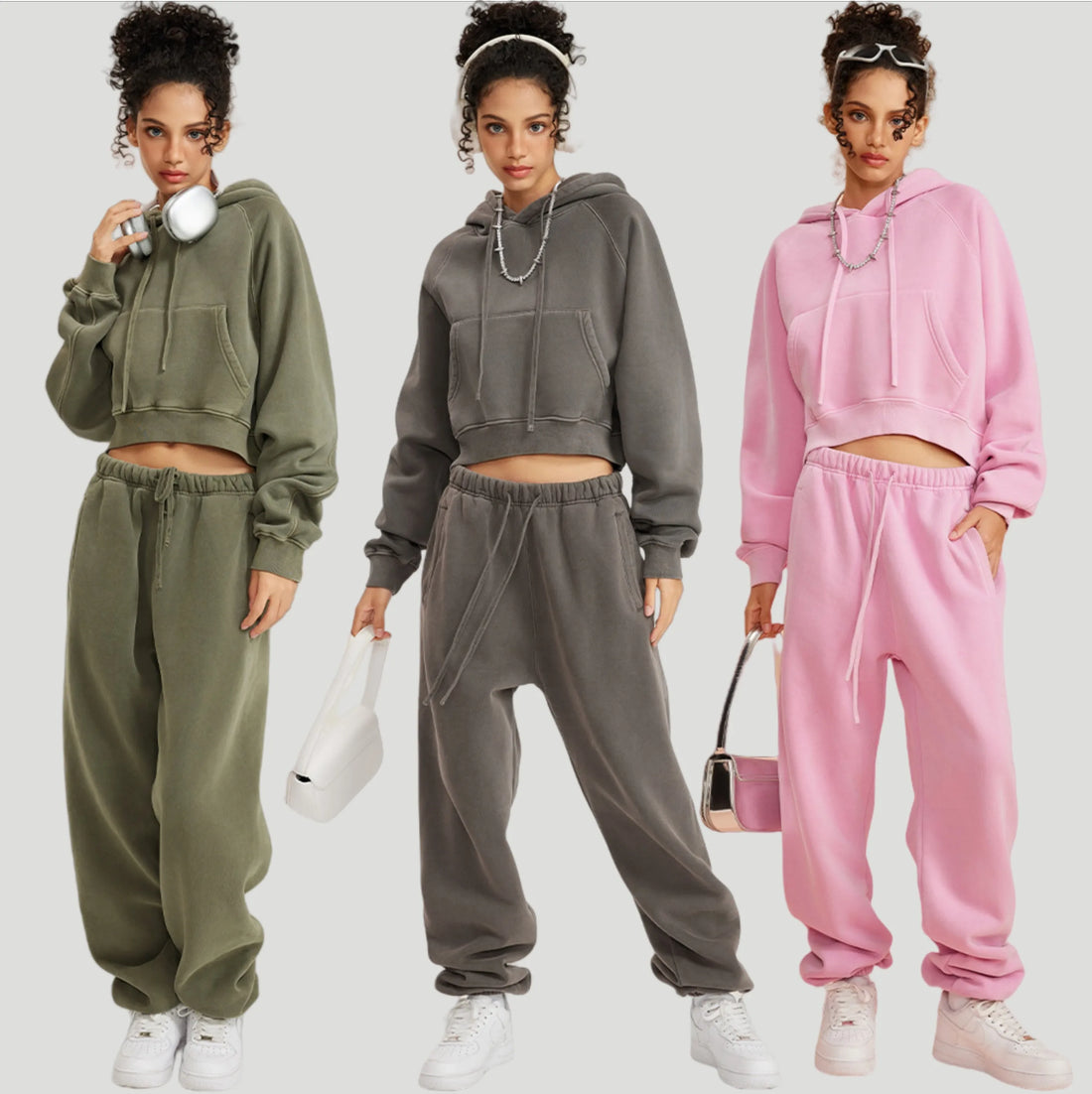High quality workout athletic women's pants 355 Grams hooded casual sports women's hoodies windproof sweatpants and hoodie set