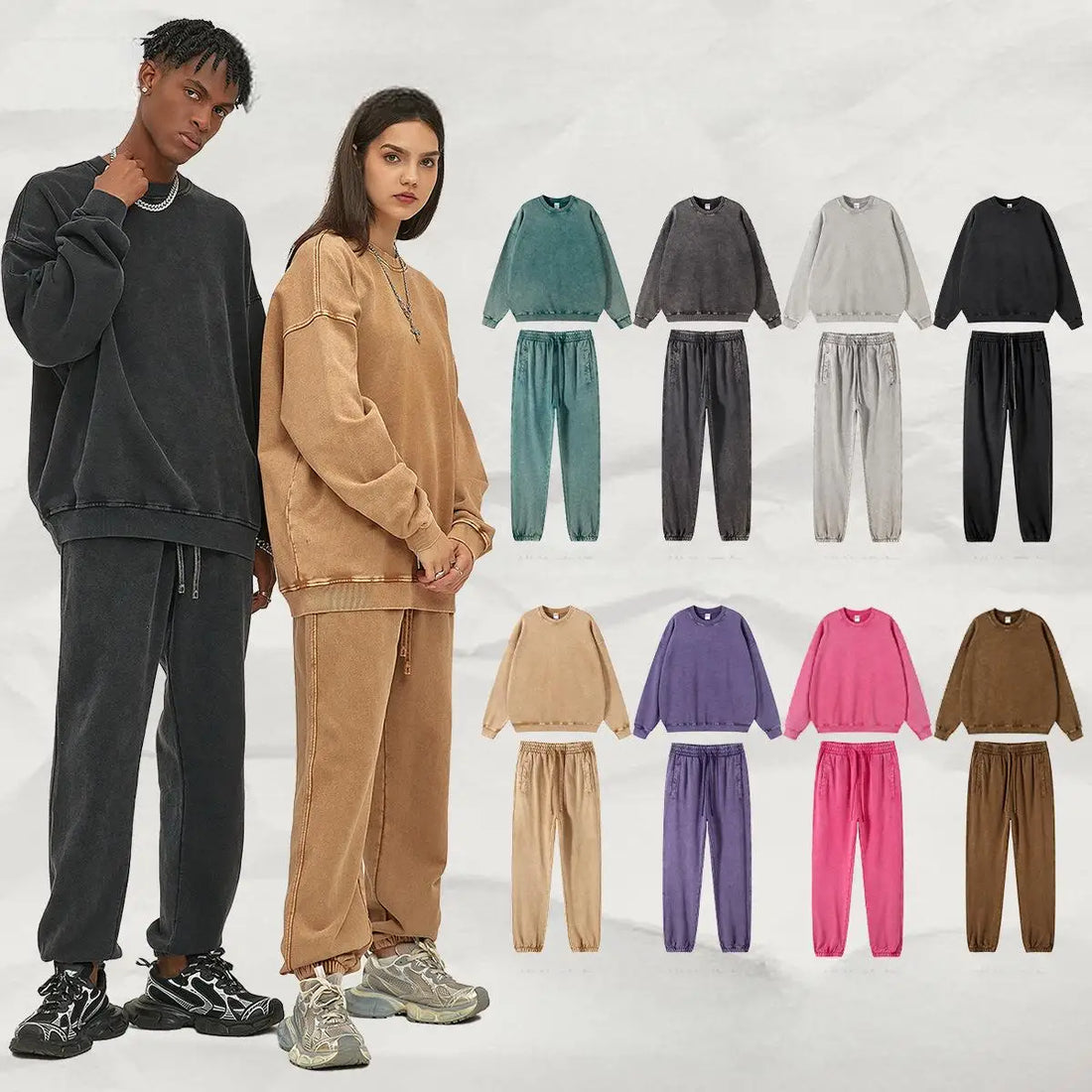 Embroidery Heavyweight Tracksuits Two Piece Set Vintage Hoodies and Joggers Pants & Trousers Set