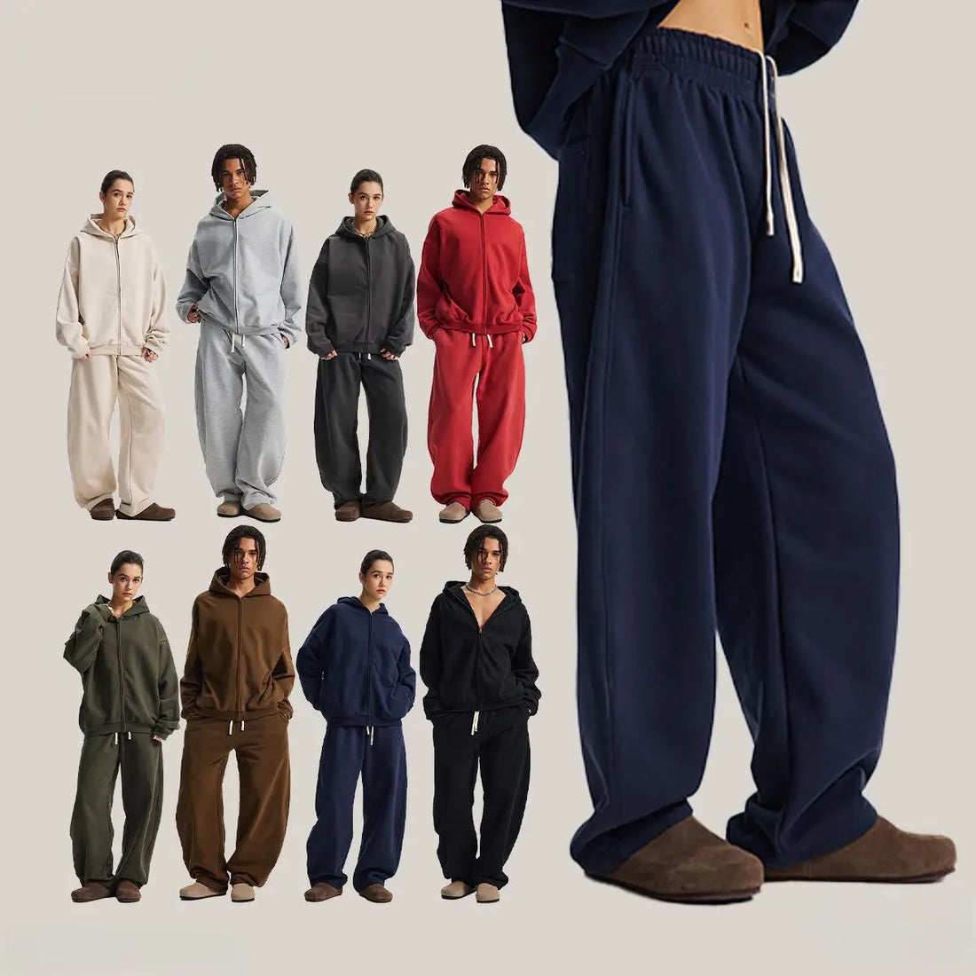 Hoodies and Sweatpants Set Streetwear Style Fleece Tracksuit Preshrunk Oversized Gym Jumper and Pants Sets