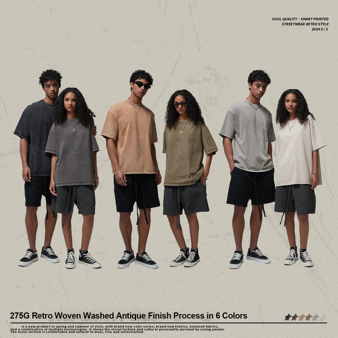 2026 Men's Casual Vintage Washed Street Style Spray Dyeing Cotton T-Shirt American Trendy Loose Short Sleeve Shorts Set