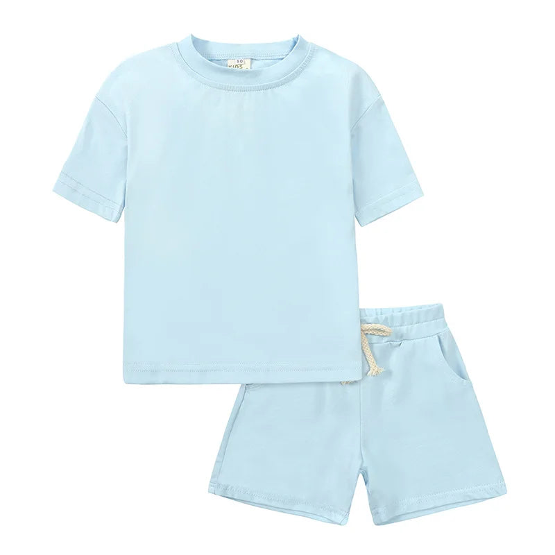 Toddler Kids Baby Boys Summer Casual Clothes Sets Solid Short Sleeve T-Shirt Outfit 2pcs Set Custom Children'S Clothing